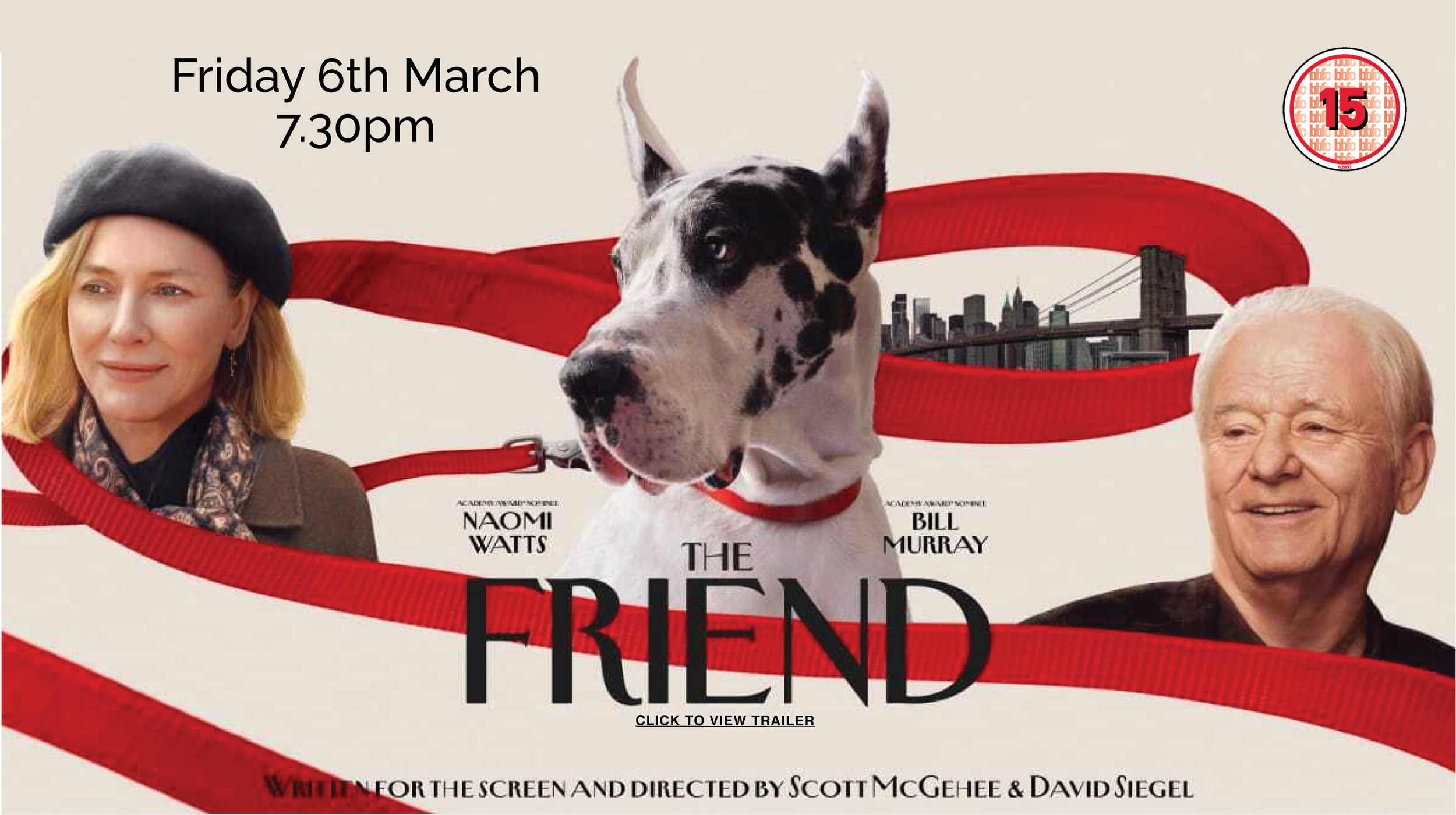 PLEASE NOTE: During the current building works, on film nights, there are limited disabled parking spaces for blue badge holders, these are available in the layby outside the front entrance of the Vinson Building.